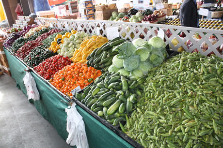 Met name de nieuwe oogst zoete aardappelen uit de streek, pompoenen en appelen waren ruim voorradig. Ook was er een groot assortiment lokale vrucht- en vollegrondsgroenten. Zo zie je veel Collards (mergkool) een product dat je in Nederland al helemaal niet tegenkomt. In tegenstelling tot de retailers in de omgeving was het aanbod 'organic' op de markt erg beperkt. Eén van de oorzaken hiervan was volgens de manager van de markt dat de telers die op de markt staan een flink areaal vertegenwoordigen en dat er niet zoveel biologische telers zijn, die deze capaciteit hebben.