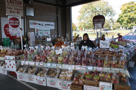 Op de consumentenmarkt staan puur telers uit North Carolina. Telers huren per dag of week een unit. Anderen (twaalf van de honderd) staan er jaarrond. De telers voeren opvallend genoeg bijna allemaal een breed assortiment, vaak met één hoofdproduct. De organisatie van de markt probeert het aanbod in balans te houden. Zo is er een wachtlijst voor telers van pompoenen, aardbeien en kerstbomen. De groothandelaren op de Farmers Market voeren daarnaast een breed assortiment importfruit. Er worden speciale events gehouden zoals een 'Pumpkin Night' en 'Strawberry Day.