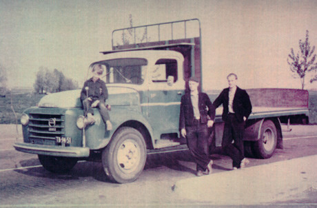 Bakker AGF in vroeger tijden met Jan op de motorkap