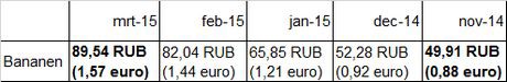 Ook publiceerde de site een overzicht van de bananenprijzen in de afgelopen maanden. Daaruit blijkt dat de prijs sinds november 2014 bijna verdubbeld is.