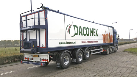 Ook de eigen ontwikkelde valmat kan daarvoor toegepast worden. Voor het breken van de val worden traditioneel rubberen riemen gebruikt. Deze werken volgens Henk prima wanneer er een constante aanvoer is van het product. "Tegenwoordig zijn de laadbanden vaak breder en ook wordt er meer met kistenkantelaars gewerkt. Dan valt een deel van de aardappelen er standaard naast. Wij hebben een ander type valmat ontwikkeld. Het zijn twee matten die trapsgewijs boven elkaar worden gemonteerd. Door er elastische banden aan vast te maken, rekken de matten mee met de aanvoerhoeveelheid. Belangrijke tools hierbij zijn natuurlijk de chauffeur en de laadmedewerker maar we zien goede resultaten van onze valmatten."