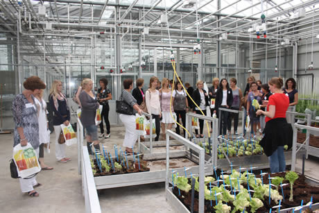De groep kreeg nog een rondleiding in het lab en mocht daarna sla oogsten in het demoveld. Hier stonden allerlei rassen kool en sla en voor velen was het verrassend dat er zoveel variëteiten bestonden.