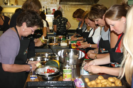 's Avonds konden de dames los gaan in de keuken van Monique van Gemeren. Zij is eigenaresse van kookstudio 't Smaakatelier in Klundert en geeft daar kookworkshops.