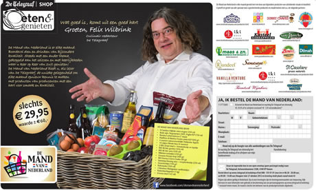 Tholen - Zaterdag sierde culinair redacteur en initiatiefnemer Felix Wilbrink in een paginagrote advertentie in De Telegraaf met 'De Mand van Nederland'. Het betreft een keur aan kwaliteitsproducten, die niet altijd makkelijk verkrijgbaar zijn. In de mand, die 29,95 euro kost, zitten deze maand onder meer biologische Zespri kiwi's, groentechips, kasteelaardappelen (Jac van den Oord) en Milanino-tomaatjes van Viva Veggies. Ook L. Maas & Zn en Freshweb ondersteunen het project.
