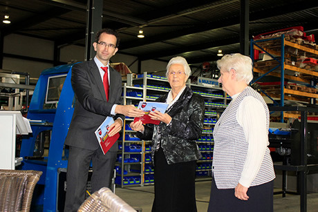 Vervolgens werden de eerste exemplaren van het door Uitgeverij Boekhout gerealiseerde magazine uitgereikt aan de vrouw van de oprichter Maarten van Burg en de vrouw van - medewerker van het eerste uur - Bram Wondergem, waarna burgemeester Huisman met een druk op de knop de machine in werking zette.