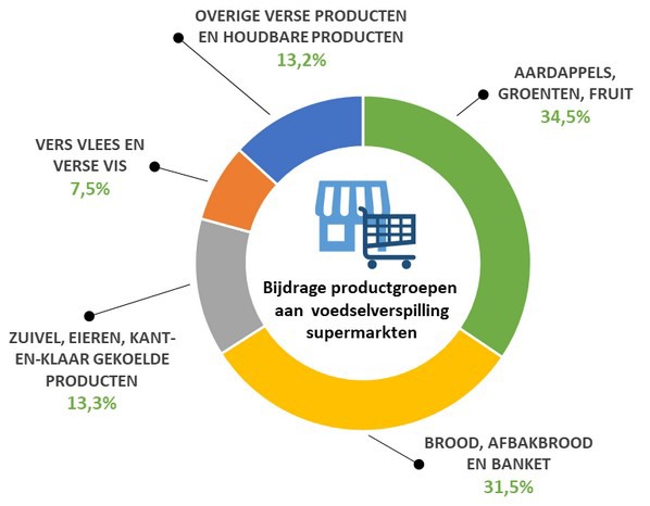De 1,7% voedselverspilling binnen het supermarktkanaal bestaat uit vijf productcategorieën:
