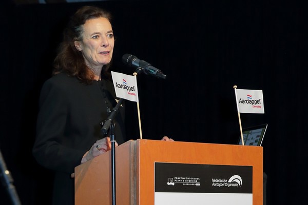 Prof. dr. ir. Louise O. Fresco, voorzitter Raad van Bestuur Wageningen University & Research, geeft tijdens het Jonge Boeren Programma haar visie op ‘De rol van de jongeren in de aardappelsector en de toekomst van de landbouw en de aardappelsector in het bijzonder in Nederland’. Foto: Aardappelwereld Magazine