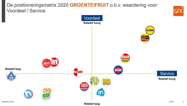 Supermarkten investeren de laatste jaren flink in het uiterlijk van de AGF-afdeling. Het Echt Vers concept van Albert Heijn kon echter niet het verschil maken. De waardering voor voordeel als voor service was minder hoog dan in 2019. Jumbo heeft zich significant wel verbeterd, net als Boni, Jan Linders, Vomar en Coop. Poiesz heeft zich wel verbeterd in vlees, zij werden eerste, maar vielen juist terug in klantwaardering voor AGF.