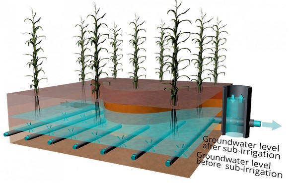Rioolwaterzuiveringsinstallaties in Nederland lozen jaarlijks ongeveer 1,9 miljard m3 water, veel meer dan de watervraag voor bovengrondse irrigatiesystemen. "In vergelijking met bovengrondse irrigatietechnieken is bij subirrigatie meer water nodig omdat het grondwater op een gewenst niveau gebracht moet worden. Er gaat echter ook minder irrigatiewater verloren door verdamping."