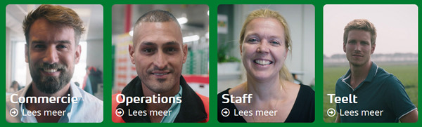 Met de prikkelende vraag “Waar ligt jouw uitdaging?” opent de website en presenteren afdelingen zich met testimonial video’s van medewerkers uit Commercie, Operations, Staff en Teelt. Uiteraard hebben de vacatures een prominente plaats op de website en kan een vacature-alert worden ingesteld. Daarnaast kan er ook gesolliciteerd worden voor een stageplek of BBL-werkplek.