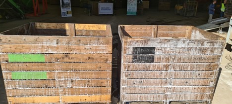 Links een onbehandelde en rechts een gedesinfecteerde bewaarkist