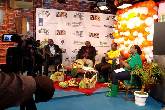Live tv-uitzending van Dutch Day van de Harvest Money Expo op de nationale Oegandese tv