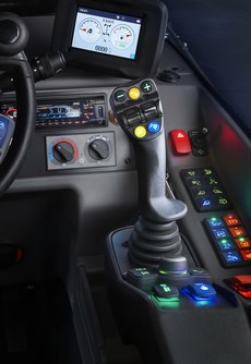 De bestuurder kan bovendien sneller werken dankzij de nieuwe multifunctionele Bobcat-joystick. De FNR-knop (Forward-Neutral-Reverse) aan de achterzijde van de joystick kan eenvoudig met de wijsvinger worden bediend. De bestuurder kan met de duim de meeste functies voor giek en hulphydrauliek bedienen, plus nieuwe slimme functies zoals automatisch grijpen, bak schudden, de giekzweefstand en het rijversnellingssysteem.