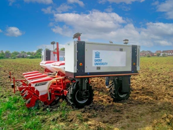 Deze robot in combinatie met een technologie die het veld plaatsspecifiek kan behandelen is gloednieuw en werd ontwikkeld aan de faculteit Bio-ingenieurswetenschappen van de UGent. In december zal de robot voor het eerst te zien zijn op de Agribex landbouwbeurs.