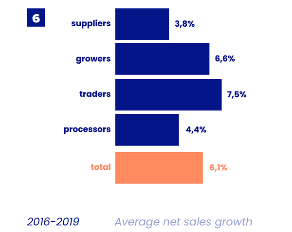 A-INSIGHTS gelooft dat intuïtie en ervaring niet genoeg zijn om de juiste strategische beslissingen te kunnen nemen; je hebt betrouwbare inzichten nodig. Daarom heeft het bedrijf de de financiële gegevens van circa 400 Europese AGF-bedrijven – binnen vier ketenschakels: veredeling, teelt, handel en verwerking – in de periode 2016-2019 geanalyseerd, en de belangrijkste ontwikkelingen binnen de sector in kaart gebracht in een trendrapport. Een paar opvallende conclusies.