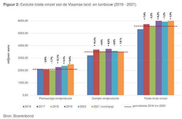 Boerenbond evalueert jaarlijks na de zomer het productiejaar en maakt een raming van de jaarresultaten. Dat doet men voor acht sectoren, waarvan glasgroenten er een zijn. De land- en tuinbouwsector behaalde dit jaar over de hele linie een omzet van 6 miljard euro, een cijfer waarmee men weer aanleunt bij de omzet van 2019. Dit cijfer toont volgens de beroepsorganisatie dat de sector corona nu definitief achter zich lijkt te laten.