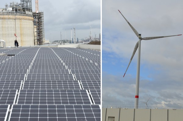 6000 m2 aan zonnepanelen en de windmolen zijn goed voor 4 MW hernieuwbare energie