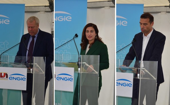 De CEO van Luik Natie, Stefaan Verhulst, de minister van Energie Zuhal Demir en de CEO van Engie, Thierry Saegeman benadrukten de urgentie van de energietransitie.