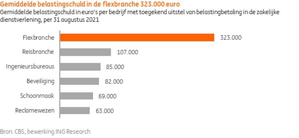 Mede dankzij de financiële overheidssteun is de sector de coronapandemie tot nu toe relatief goed doorgekomen. Circa één op de vijf flexbedrijven heeft uitstel van belastingbetaling aangevraagd. Voor de gehele branche bedraagt de belastingschuld 985 miljoen euro, wat neerkomt op gemiddeld 323.000 euro per flexbedrijf dat belastinguitstel heeft aangevraagd, al zijn de onderlinge verschillen groot. Vanaf 1 oktober 2022 moet worden begonnen met het terugbetalen van deze schuld. Ondanks dat bedrijven hier vijf jaar de tijd voor krijgen, zal het voor een aantal flexbedrijven mogelijk tot financiële problemen leiden, met bedrijfsbeëindiging of faillissement tot gevolg.