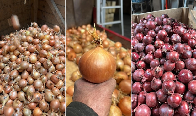 "De baalprijs ligt voor de middelsortering rond de 18/19 cent, de grove worden voor 20 cent verkocht en de supers - waar er niet veel meer van zijn - worden voor een niveau rond de 24/25 cent verkocht. Ik ben erg benieuwd wat het staartje van het seizoen brengt. We zouden nog wel een week of zes moeten doorgaan. Wanneer er een goede export is, vinden die uien wel een plekje, maar als de export echt stilvalt hebben we een probleem."