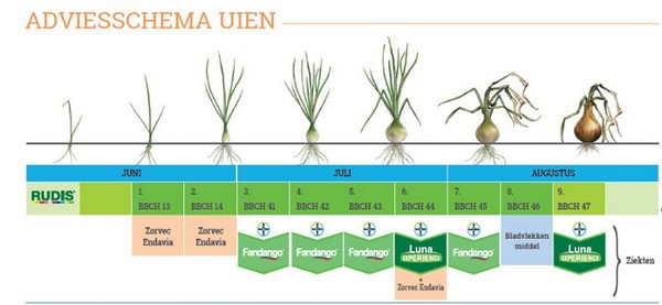 Om het schema compleet te maken kan worden afgewisseld met bijvoorbeeld Zorvec Endavia waar men 0,5 L/ha Luna Experience aan toe kunt voegen om ook bladvlekkenziekte en Stemphylium te beheersen.