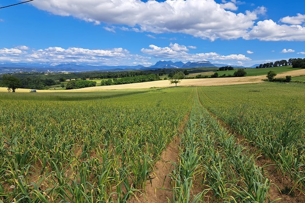 Het teeltschema is iets gewijzigd door het regenachtige weer. "De groei liep wat voorop in de maand maart, maar die voorsprong is afgezwakt door zware regenval in het voorjaar", vertelt Dominique Viel. "We zitten weer op het gebruikelijke schema van elk jaar." De knoflook moet eerst nog drogen voordat ze aan het einde van de maand in de schappen van de supermarkten ligt. Dan vindt de overgang plaats van product van Spaanse oorsprong naar aanvoer van Franse origine. De paarse knoflook uit de Drôme wordt nu ook uit de grond gehaald en zou begin juli op de markt moeten komen.