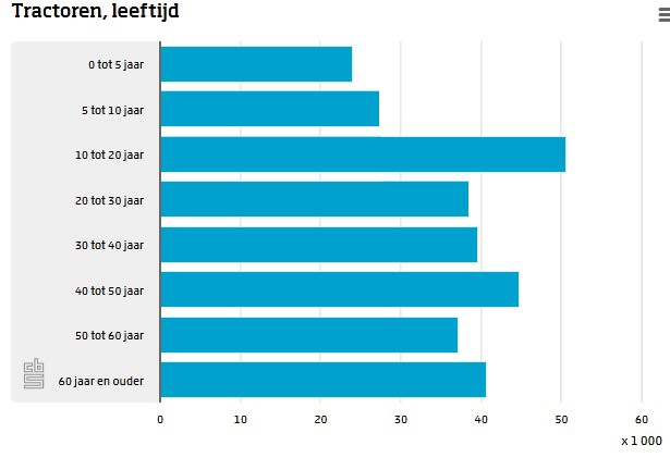De in Nederland geregistreerde tractoren zijn relatief oud. Iets meer dan de helft (54 procent) is dertig jaar of ouder. 17 procent is jonger dan tien jaar, terwijl 13 procent zestig jaar of ouder is. Gemiddeld genomen zijn tractoren 33 jaar oud.
