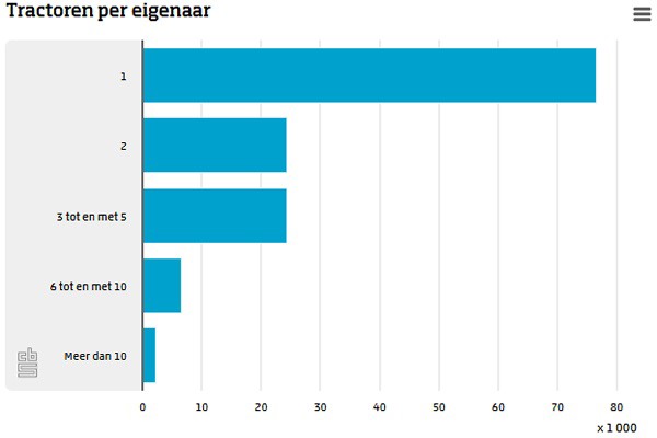 In Nederland hebben ruim 134 duizend eigenaren minimaal één tractor. Ruim de helft (57,0 procent) van alle eigenaren bezit één tractor. Een kleine groep (6,6 procent) van tractoreigenaren heeft meer dan vijf tractoren.