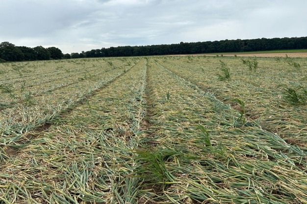 "De afrijping van de uien gaat sneller dan menigeen had verwacht", steekt Kees Jacobs van wal. "Maar eigenlijk is het ook zo raar nog niet want de uien hebben hun groeidagen, dat zijn er ongeveer 130, er gewoon opzitten. We zijn er alleen niet meer aan gewend dat het half augustus al zo ver is." Na een voorspoedig verlopen groeiseizoen staan de uien er op de meeste percelen puik bij. "Het is nu alleen nog even de vraag of het warme weer van deze week groeidagen gaat kosten vanwege versnelde afrijping", vervolgt Jacobs. "Maar de opbrengstverwachtingen zijn over het algemeen positief en om die reden denk ik dat de kwaliteit van de uien komend afzetseizoen een grote invloed zal hebben op de afzetkansen. Daarom moeten de telers tot in de schuur hun best doen om de kwaliteit van de uien te behouden. Zorgvuldig rooien en laden is wat mij betreft het motto."