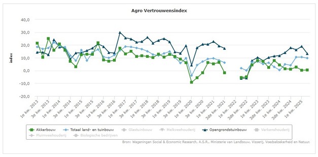 Het vertrouwen onder akkerbouwers en opengrondstuinbouwers is in het tweede kwartaal van 2025 gemengd. Dat blijkt uit de nieuwste cijfers van de Agro Vertrouwensindex van Wageningen Social & Economic Research, A.S.R. en het ministerie van LNV.