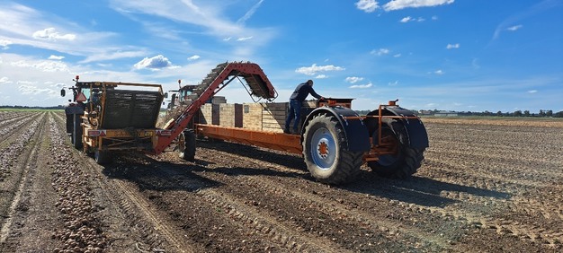 "De reden dat we al wat later in september aan het rooien zijn is - wat we hier in Zeeland missen - namelijk regen. Maar de uien zijn onder hele nette omstandigheden gegroeid en we hebben mooie opbrengsten, dus zijn erg tevreden over het groeiseizoen op deze locatie", vertelt Luc.