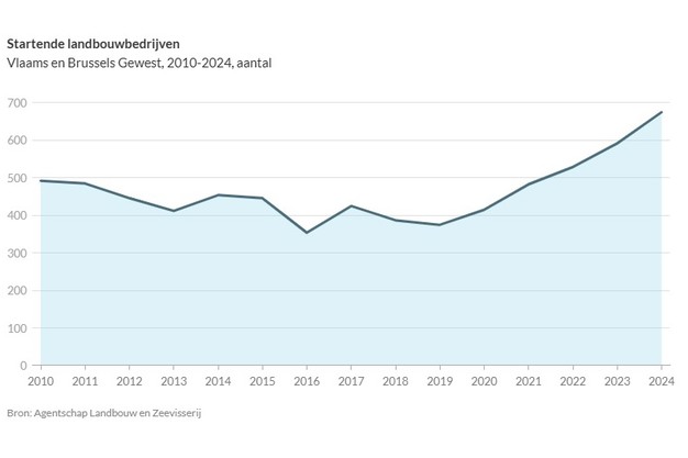 Het totaal aantal landbouwbedrijven in Vlaanderen en Brussel vertoonde in 2024 wel een lichte toename. Volgens het Agentschap Landbouw en Zeevisserij stonden er vorig jaar 23.857 landbouwbedrijven geregistreerd in de Kruispuntbank voor Ondernemingen, tegenover een langdurige daling in de jaren ervoor.