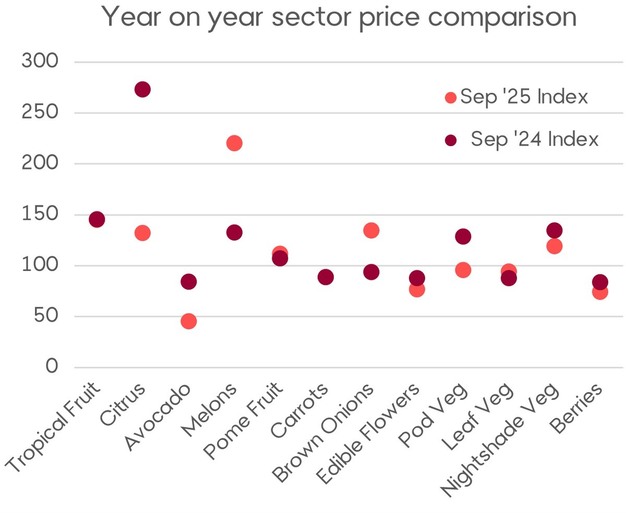In heel Australië liggen de prijzen in de AGF-sector over het algemeen lager dan in dezelfde periode vorig jaar, hoewel er ook gemengde resultaten zijn gemeld. De prijzen van groenten zijn meestal stabiel tot licht gedaald, behalve bij uien, die juist een prijsstijging laten zien. Uientelers in Zuid-Australië hebben te maken gehad met bijna recorddroge omstandigheden eerder dit jaar, wat heeft geleid tot een lagere opbrengst en verminderde kwaliteit. Daarnaast drukken stijgende inkoopkosten op de marges; deze hogere kosten zijn de afgelopen maanden doorberekend aan de retailers.