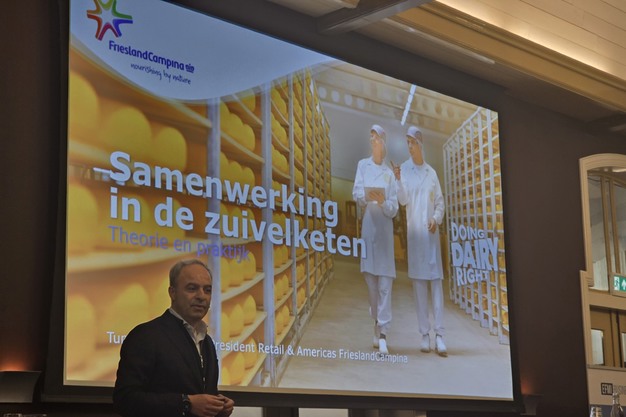 Tuncay Özgüner van FrieslandCampina gaf zo'n voorbeeld van ketensamenwerking in de zuivelketen. "FrieslandCampina telt 14.183 leden-melkveehouders in Nederland, Duitsland en België, die elke dag miljoenen mensen voeden." Na een ledenstop is dit jaar de deur weer geopend voor nieuwe telers. Maar hij gaf aan dat het niet vanzelfsprekend is, omdat veel boeren zich de afgelopen jaren bij gebrek aan rendement hebben laten uitkopen.