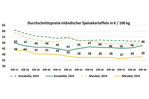 Het aanbod was zeer breed, met een groot aantal rassen op de Duitse markt. Binnenlandse partijen voerden nog steeds de boventoon, aangevuld met enkele Franse partijen. De vraag was niet bijzonder sterk en kon zonder moeite worden ingevuld. Volgens BLE hadden handelaren dan ook zelden aanleiding om hun prijsstellingen aan te passen. De eerste Annabelle-aardappelen uit Cyprus deden hun intrede en markeerden daarmee de start van het seizoen voor vroege consumptieaardappelen. Door het relatief hoge prijsniveau ten opzichte van het binnenlandse aanbod bleef de belangstelling echter zeer beperkt.