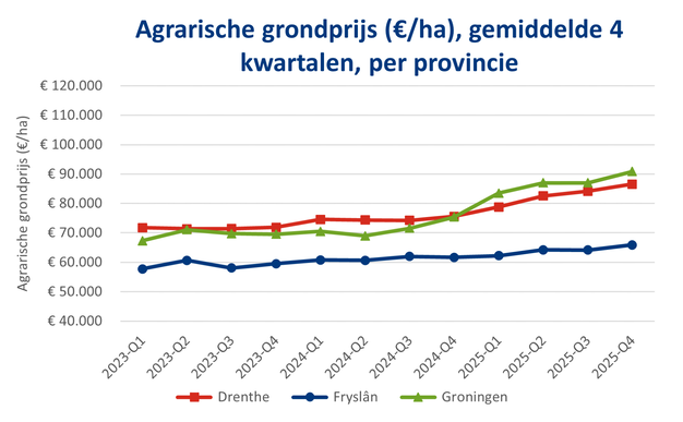 Grondprijsontwikkeling Fryslân, Drenthe en Groningen