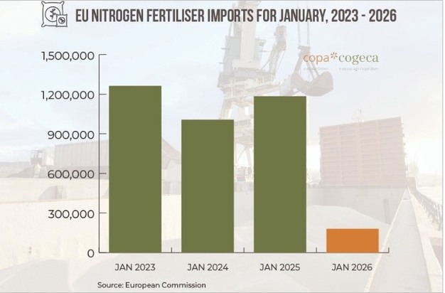 Volgens recente cijfers van de Europese Commissie zijn de importen van kunstmest in de Europese Unie scherp gedaald sinds de invoering van het Carbon Border Adjustment Mechanism (CBAM). In januari 2026 importeerde de EU slechts 179.877 ton stikstofkunstmest, tegenover 1.183.728 ton in januari 2025. Dat is minder dan 16% van het gebruikelijke volume, een ontwikkeling met verstrekkende gevolgen voor de Europese tuinbouw, waarschuwen de Europese tuinbouworganisaties Copa en Cogeca.