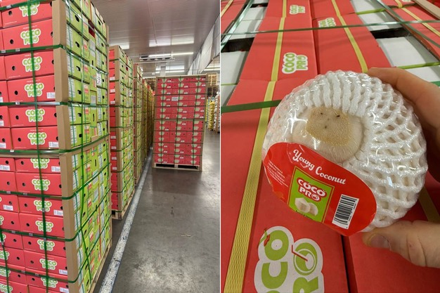 "Als je nu naar buiten kijkt, ziet het er nog niet zo lekker tropisch uit, maar voor je het weet zit je weer lekker in de zon in de tuin. Nagenoeg wekelijks zijn er leveringen van de bruine en jonge kokosnoten. We verkopen veel vooruit, zo nu ook weer voor aankomst volgende week vrijdag. Zodra de container binnen is, gaat het gros van de pallets direct weer weg. Kostenreductie en versheid ten top", aldus Martin.