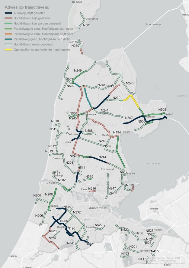Daarnaast onderzoekt de provincie of enkele andere N-wegen kunnen worden opengesteld. Mogelijk zijn daar snelheidsremmende maatregelen, wegverbreding of het verharden van de berm nodig. Het gaat om N239-2 en N240-5.
