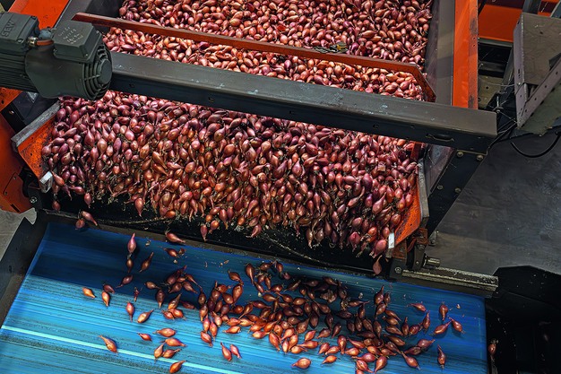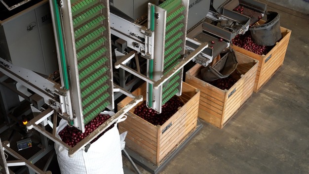 Sinds 2018 is de uientak een serieuze tak binnen Scholtenszathe. "We proberen de teelt hier in de regio van de grond te tillen en hebben serieus geïnvesteerd in een machinepark, zowel voor de teelt, het inschuren, verwerken als verpakken. Zo zijn we ook meteen in de ontwikkeling van het optisch sorteren gesprongen. Natuurlijk staat er nog weleens iemand aan de band, maar wat we kunnen automatiseren, laten we niet na," vertelt Frits. "Verder voeren we de teelt grotendeels met onze eigen vaste ploeg van twaalf vaste medewerkers uit."