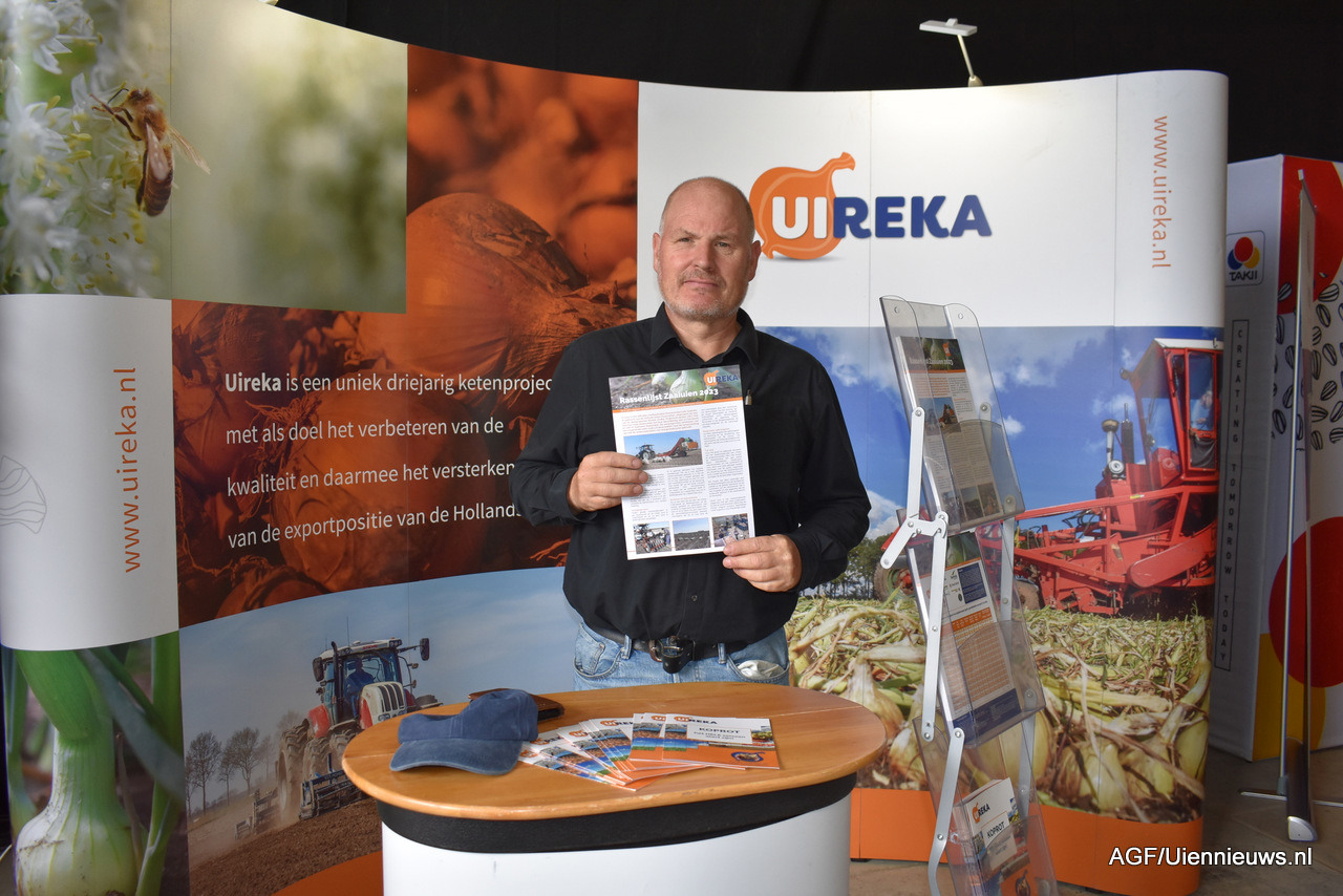 Ronald Spigt van Ui-Reka toont de nieuwe rassenlijst zaaiuien. Volgend jaar worden ook de rassen die geteeld worden op het zand meegenomen op de lijst.