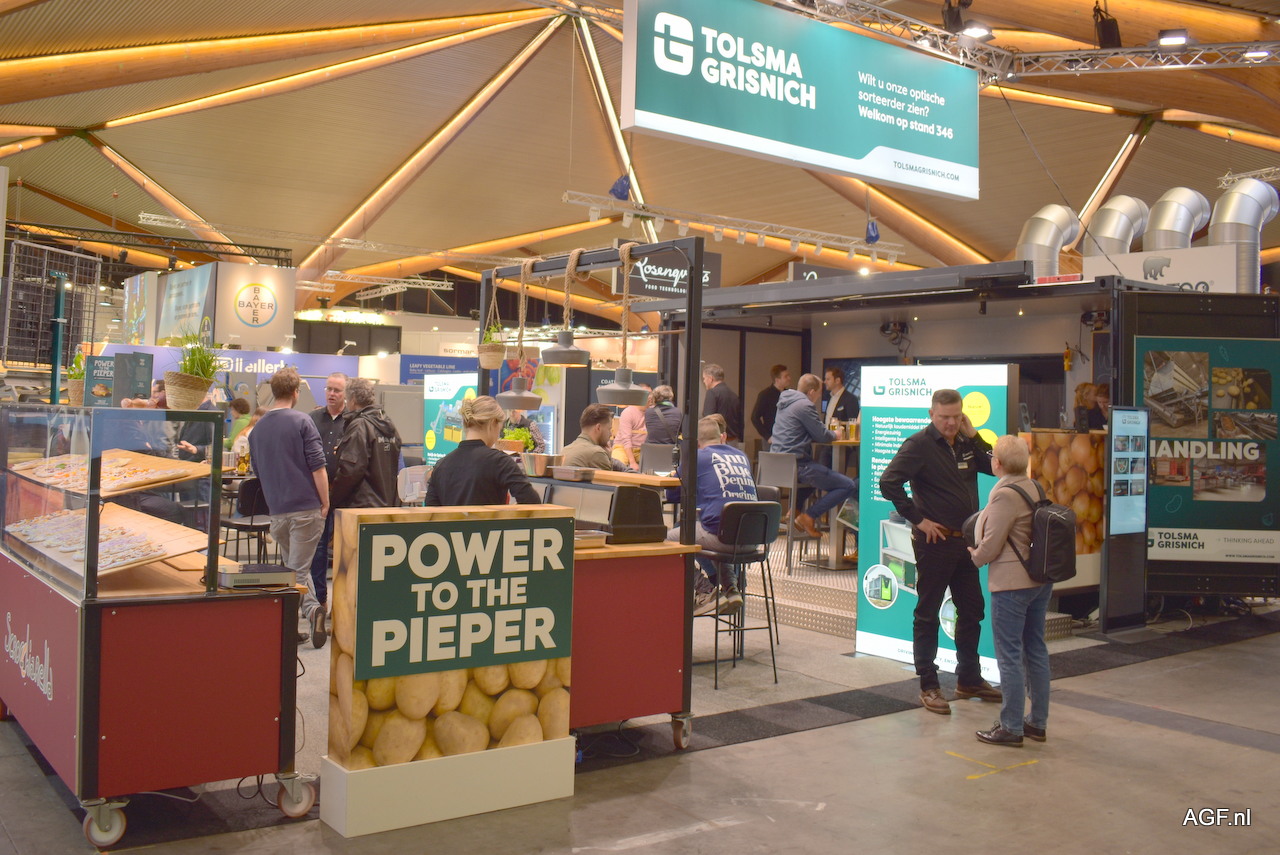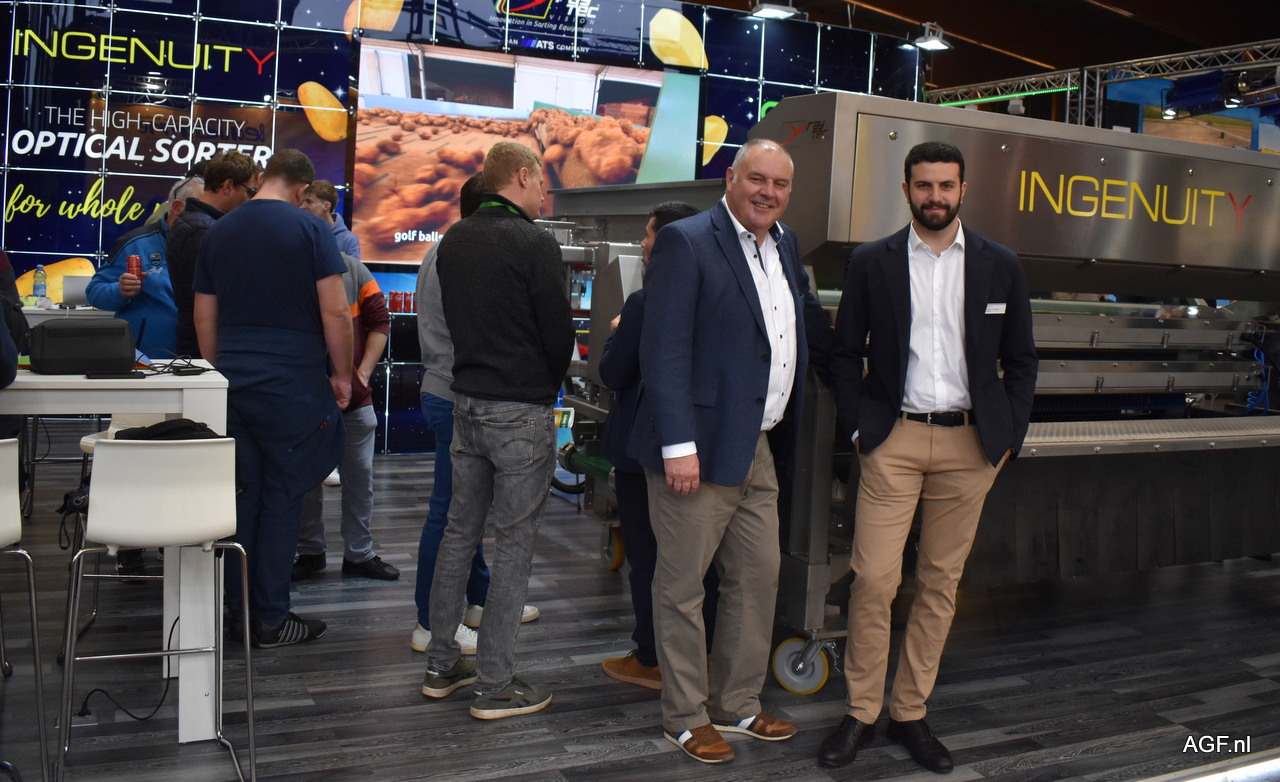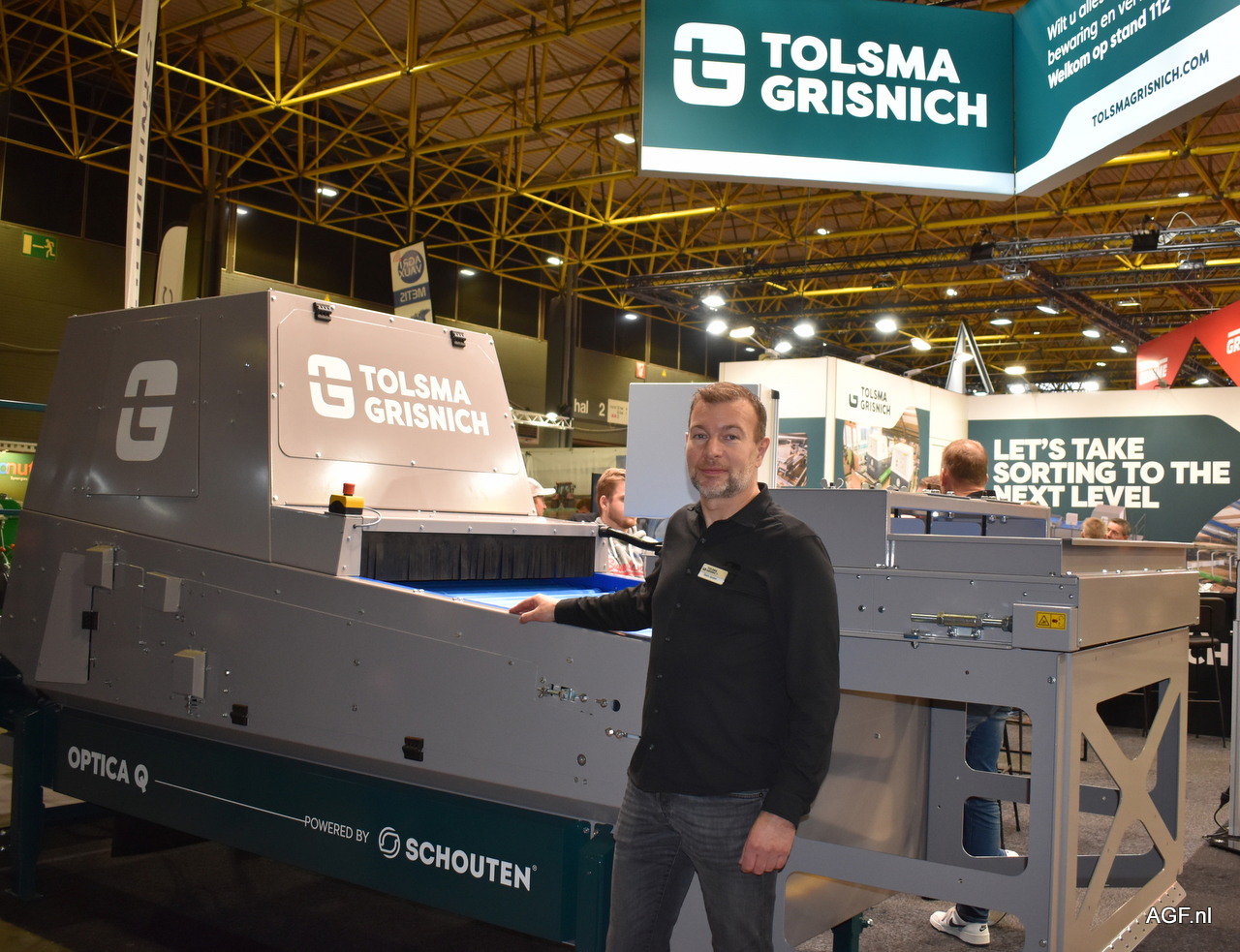 Tolsma Grisnich was op twee stands aanwezig. Bram Janssen bij de OpticaQ sorteermachine. Een kwaliteitssorteerder voor pootgoed, aardappelen en uien. O.a. bij Kleinjan aardappelhandel is deze machine geleverd.