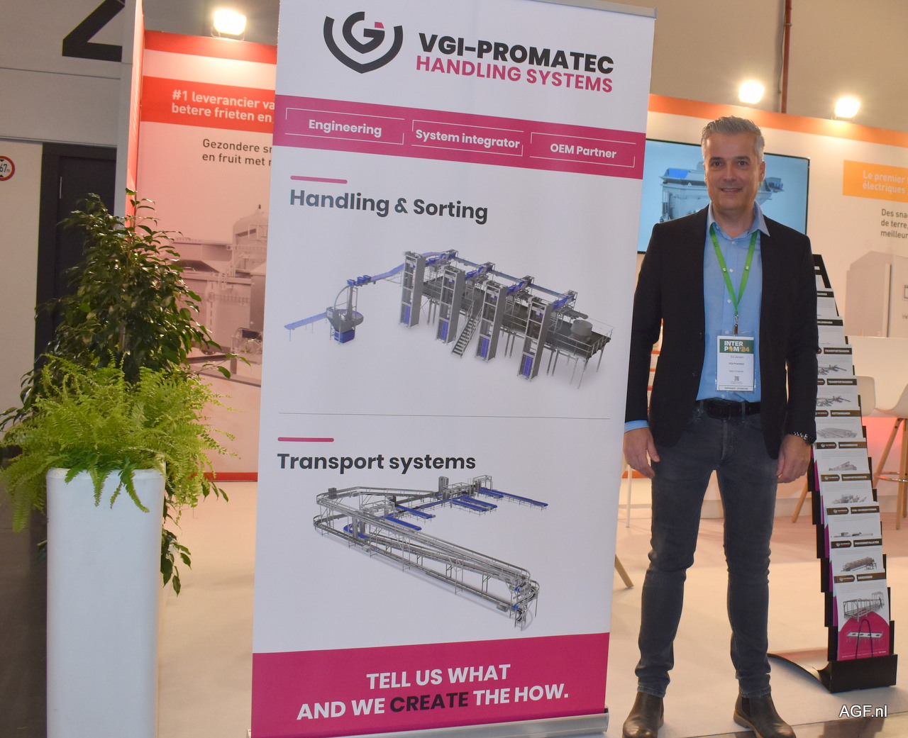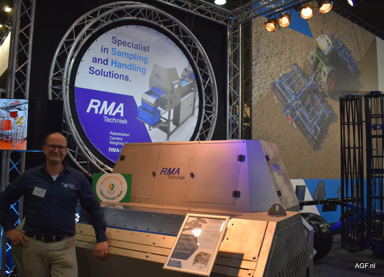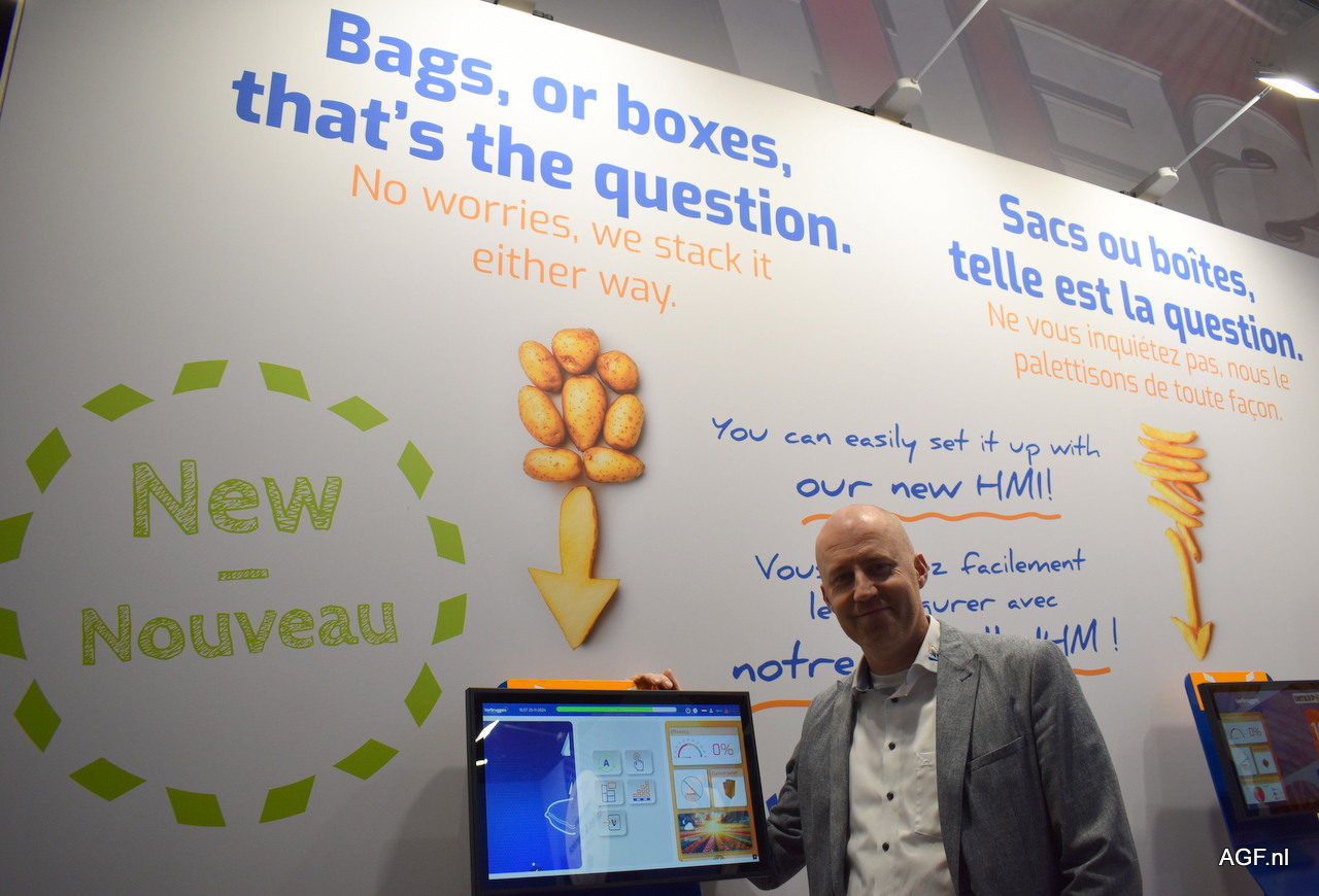 Tolsma Grisnich was op twee stands aanwezig. Bram Janssen bij de OpticaQ sorteermachine. Een kwaliteitssorteerder voor pootgoed, aardappelen en uien. O.a. bij Kleinjan aardappelhandel is deze machine geleverd.