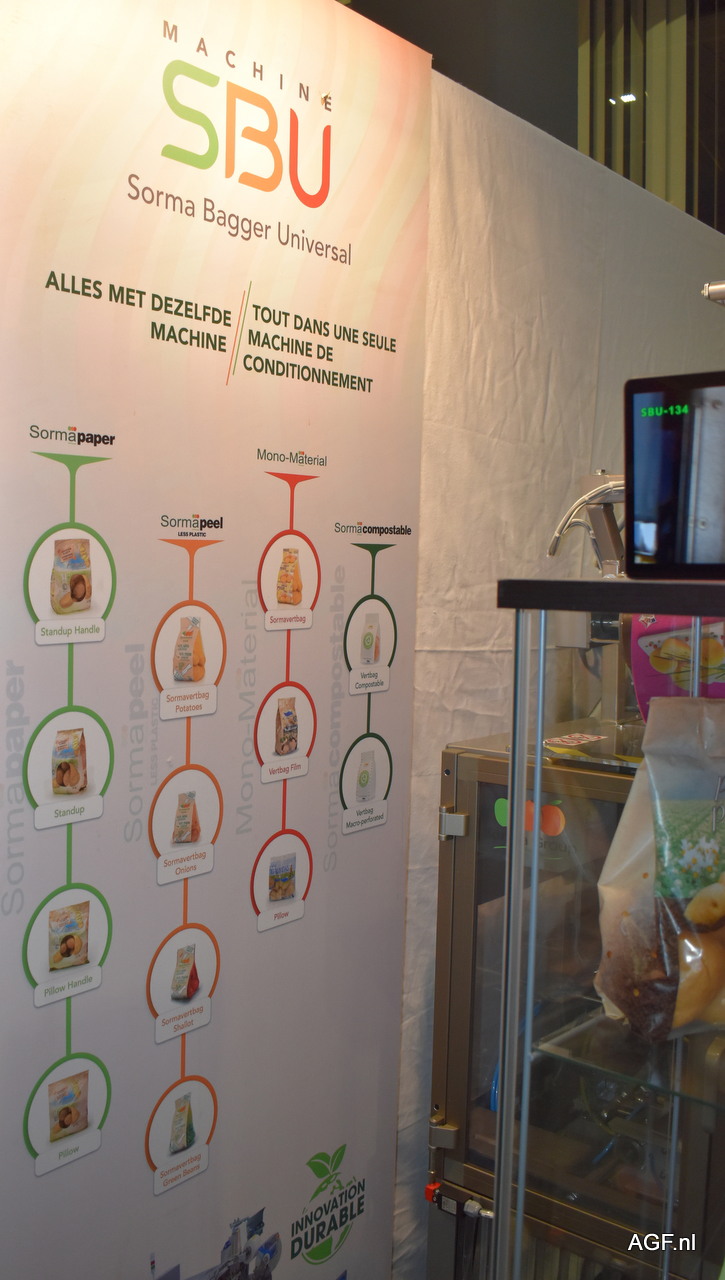 Team Sormac, zij toonden 3 verpakkingsmachines. Met de Sormac machines kan het hele gamma aan verpakkingen verpakt worden. Monomateriaal, papier, folie, plastic, net, plasticvrij alles is mogelijk. Met SBU zelfs op 1 machine veel verschillende verpakkingsmogelijkheden.