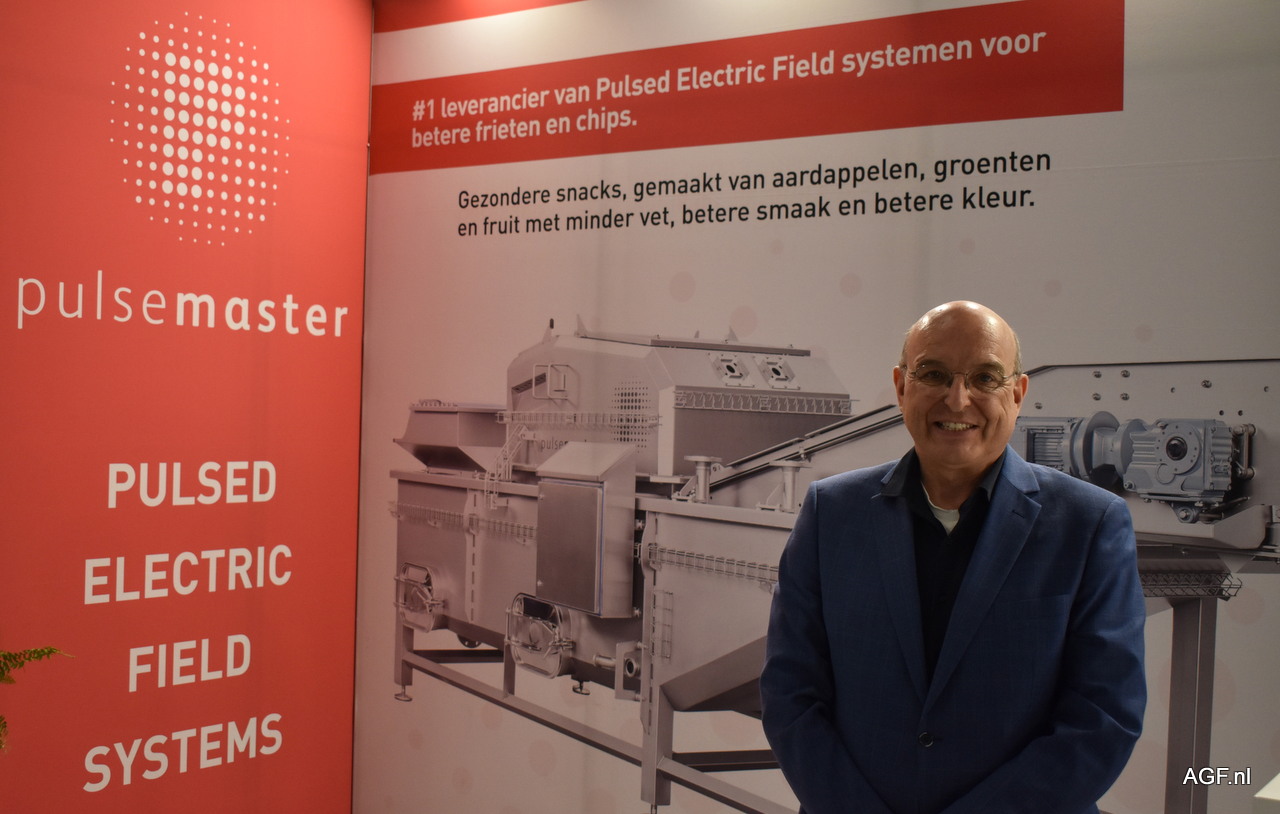 Mark Deboevere van Pulsemaster. Op de achtergrond de PEF 100 machine met een capaciteit van 60 ton per uur.