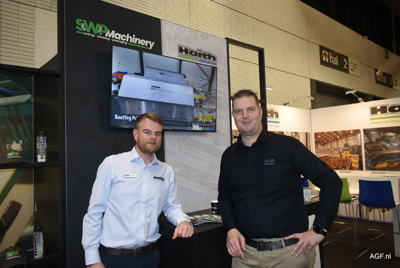 Duane Hill (Haith) en Krijn van Groningen (SWP Machinery). De partners deelden een stand op de beurs.