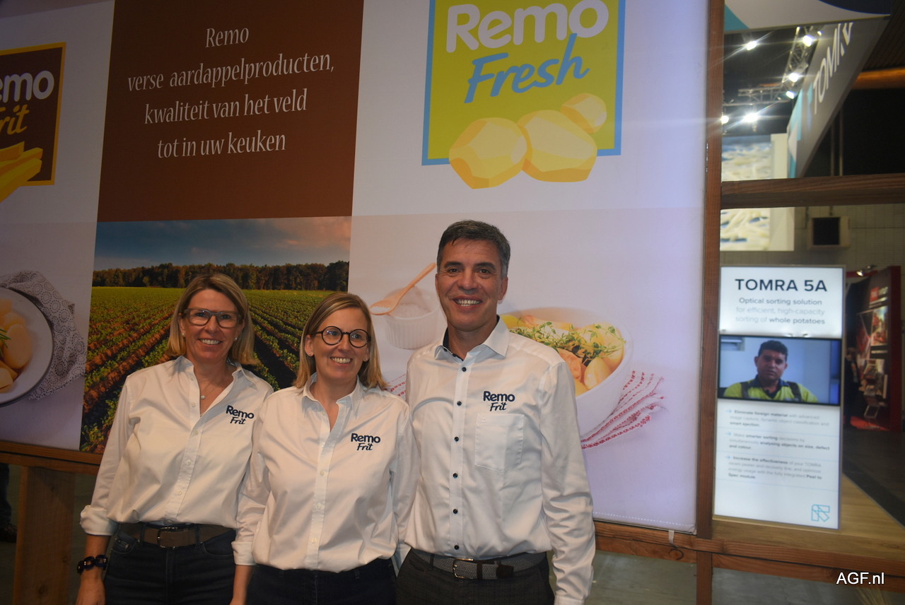 An & Els Van Remoortel met Wim Lannoey van Van Remoortel en Remofrit. Het bedrijf had uitgepakt en zag een constante drukte op de stand