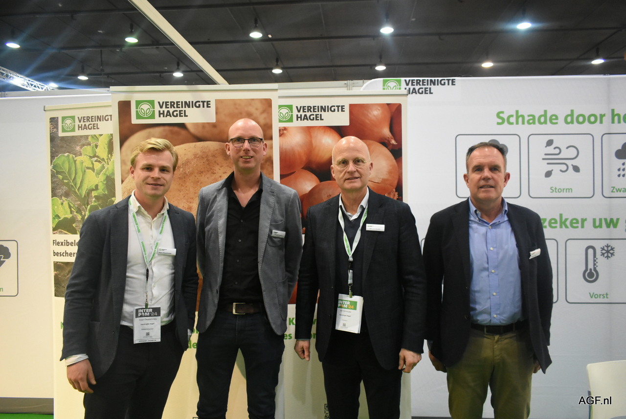 Dirk de Jaeger, Jan Schreuder, Manuel Bogaert en Daan Dessomviele van Vereinigte Hagel hadden het druk nu extreme weersomstandigheden en klimatologische zorgen een belangrijk punt was tijdens Interpom 2024