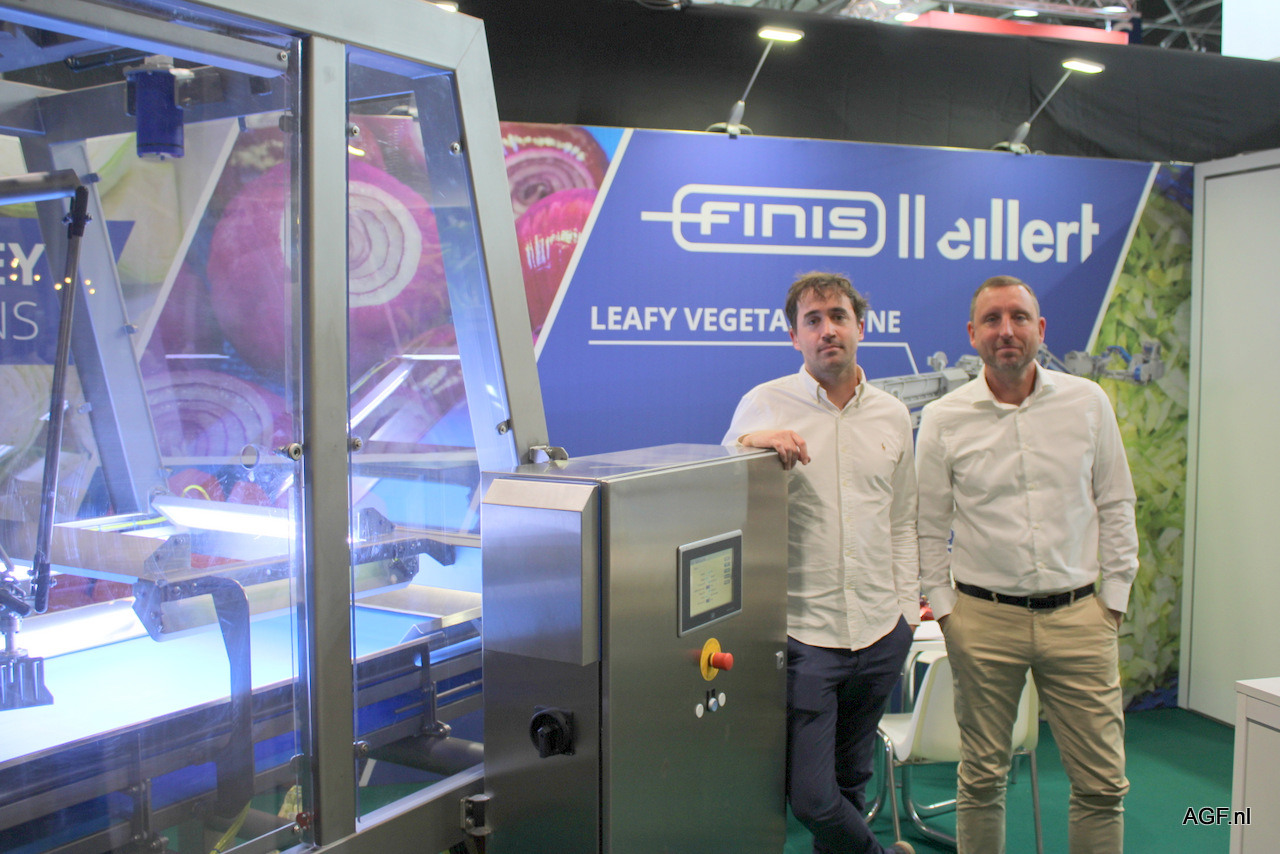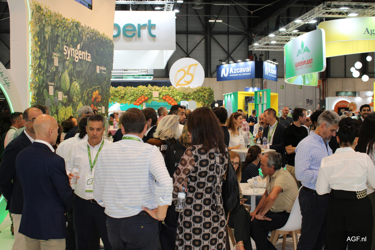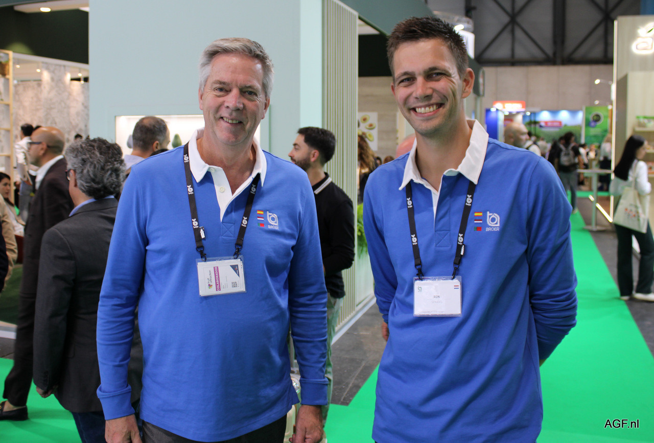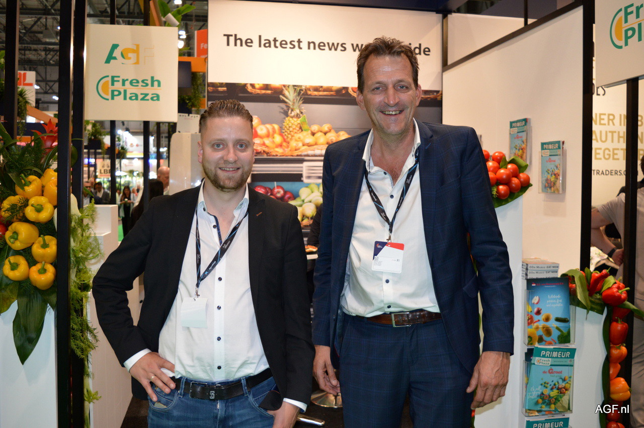 Vollegrondsgroentenhandelaar Kees Heegsma uit Lemmer (rechts) was voor het eerst op de beurs in Madrid. Hier op de foto met Marc Beckmann van Landgard