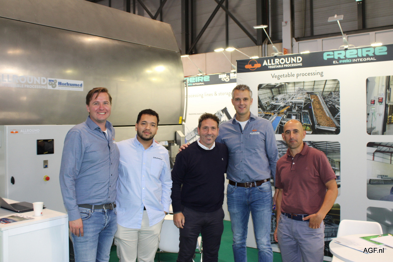 Joost Posthumius en Huib Smit van Allround Vegetable Processing met Cristian Arias, Alberto Sierra en Sergio Blazquez van de Spaanse dealer